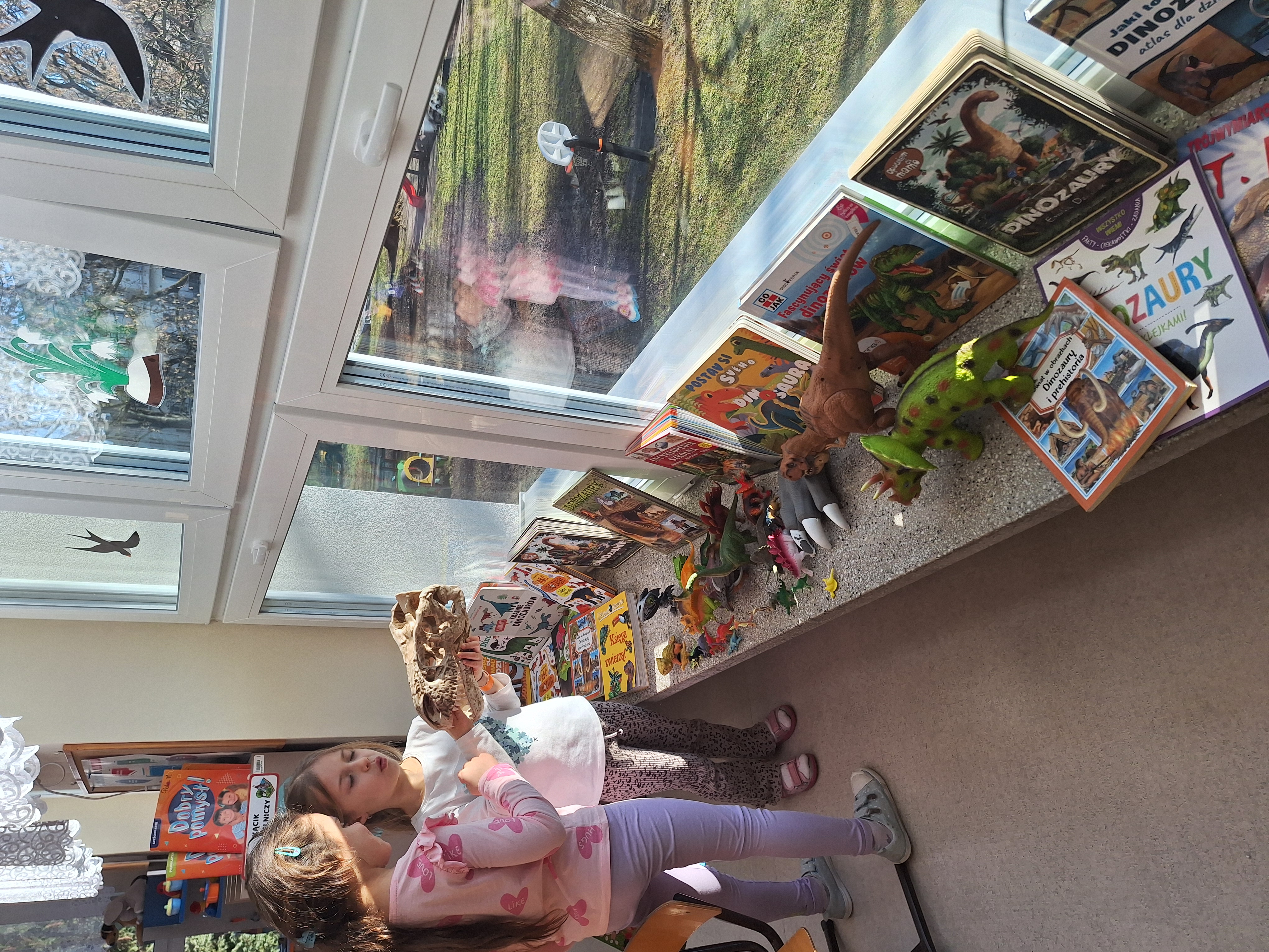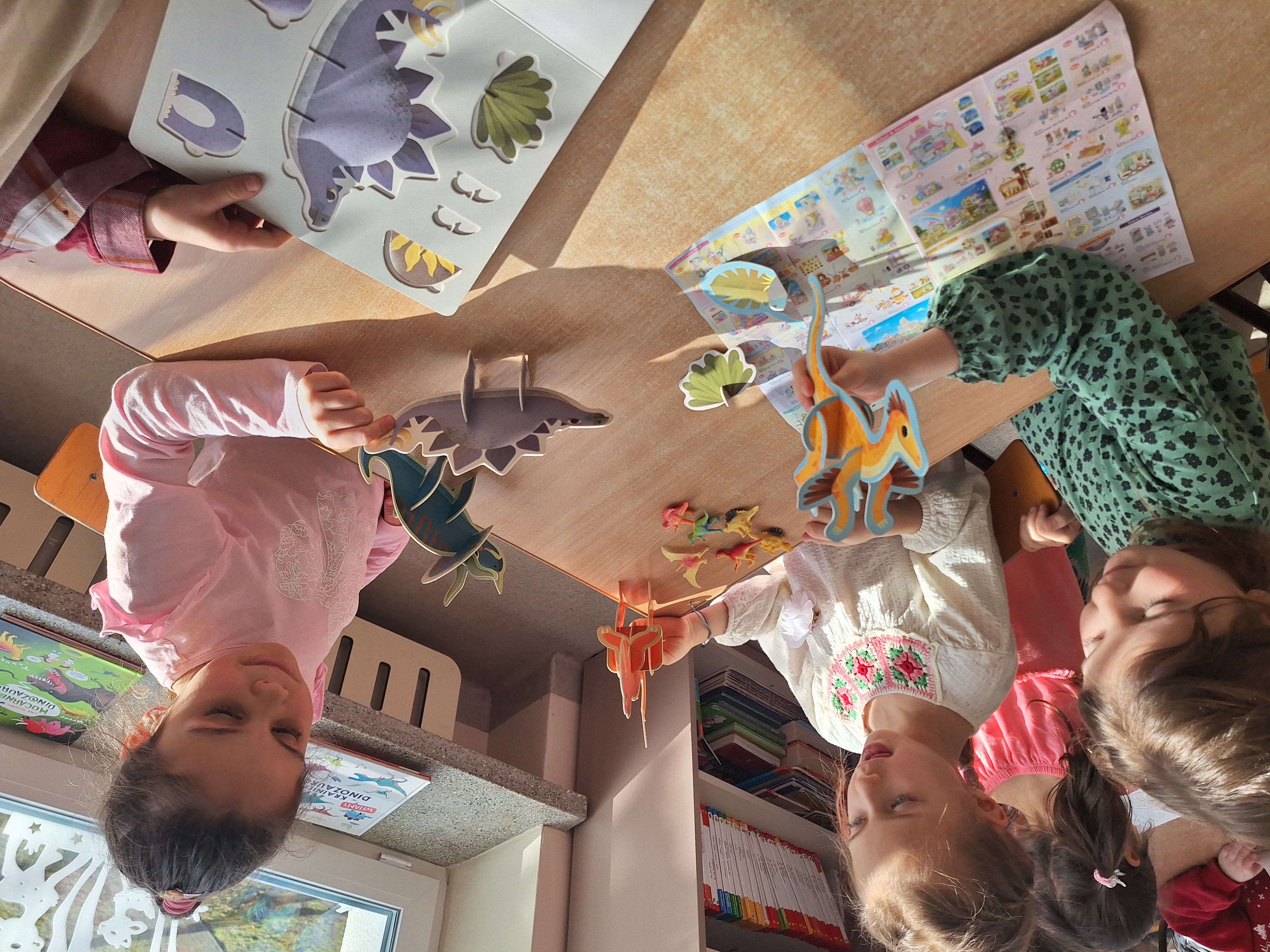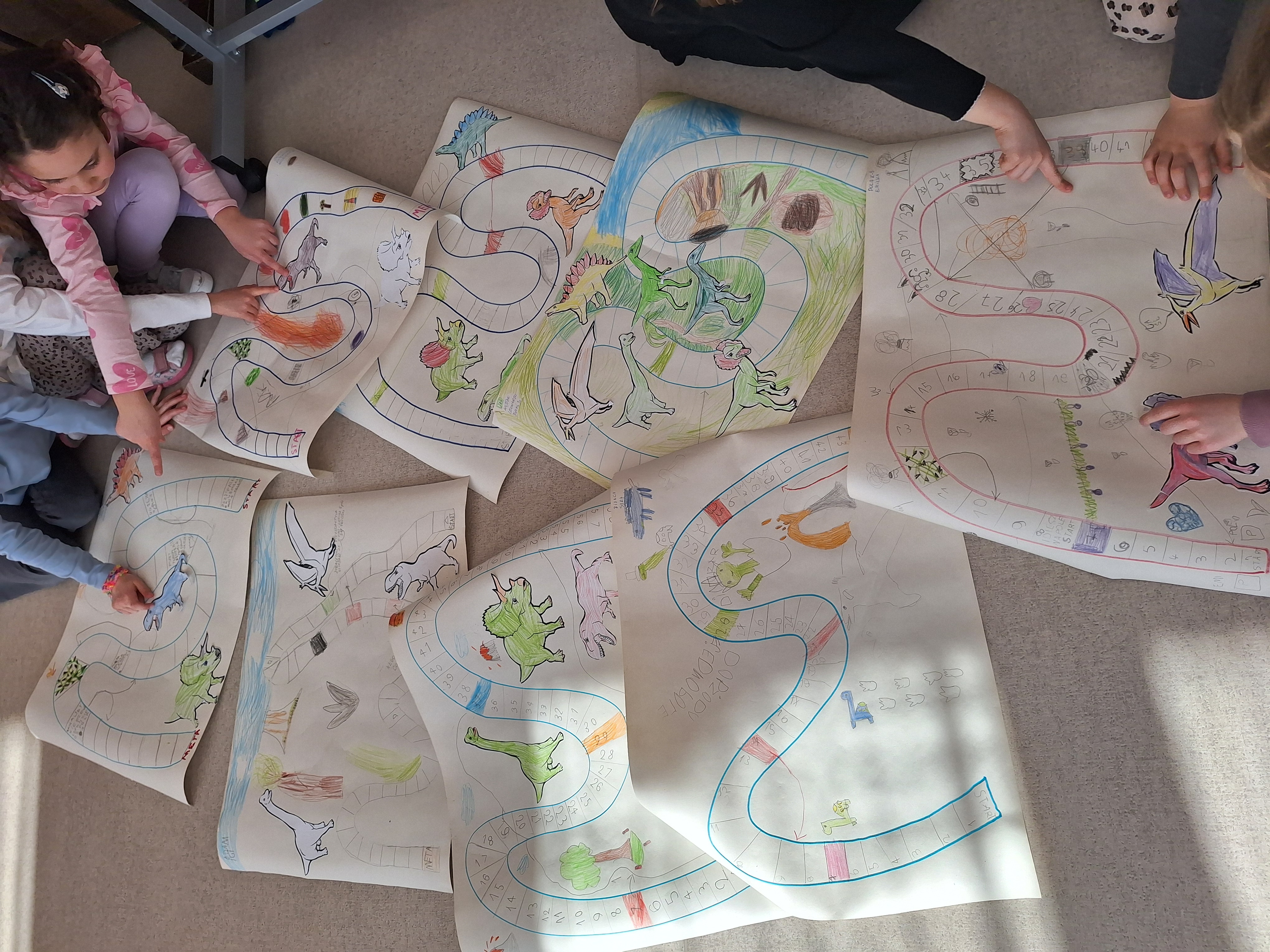 Starszaki z gr IV stworzyły wystawę tematyczną o Dinozaurach z przyniesionych z domu książek i figurek. Z ciekawych albumów mogliśmy wyczytać wiele ciekawostek o tych gadach. Była także, praca grupowa polegająca na tworzeniu gry planszowej z elementami świata prehistorycznego opartej na koncepcji prof. Edyty Gruszczyk – Kolczyńskiej.